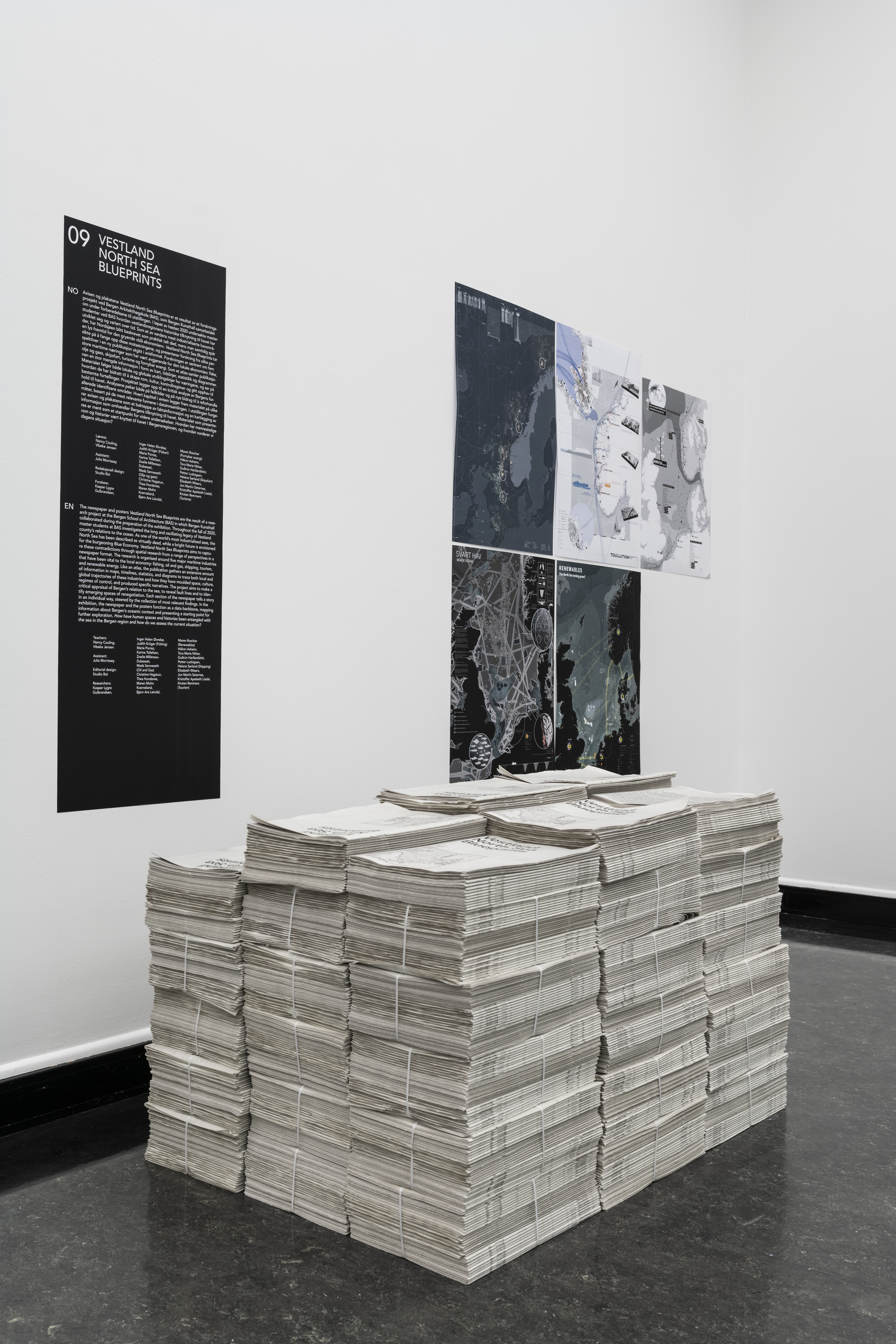Bergen is the centre of an exemplary maritime region where sets of relations, contracts and exchanges have been forged with the sea and its resources throughout history, however as one of the world’s most industrialised seas, the North Sea has been described as being virtually dead (John Palmesino). It is urgent that the extraction of resources be viewed in relation to the common responsibility for the environment, both short- and long-term. Bergen is directly experiencing the effects of climate change, of maritime pollution and of major transformations in the fishing industry, while new technologies for “clean” fossil fuel and closed system fish farming are promoted as solutions. We make a critical appraisal of Bergen’s relation to the sea, aiming to reveal fault lines, disjunctions and to identify emerging spaces of renegotiation.