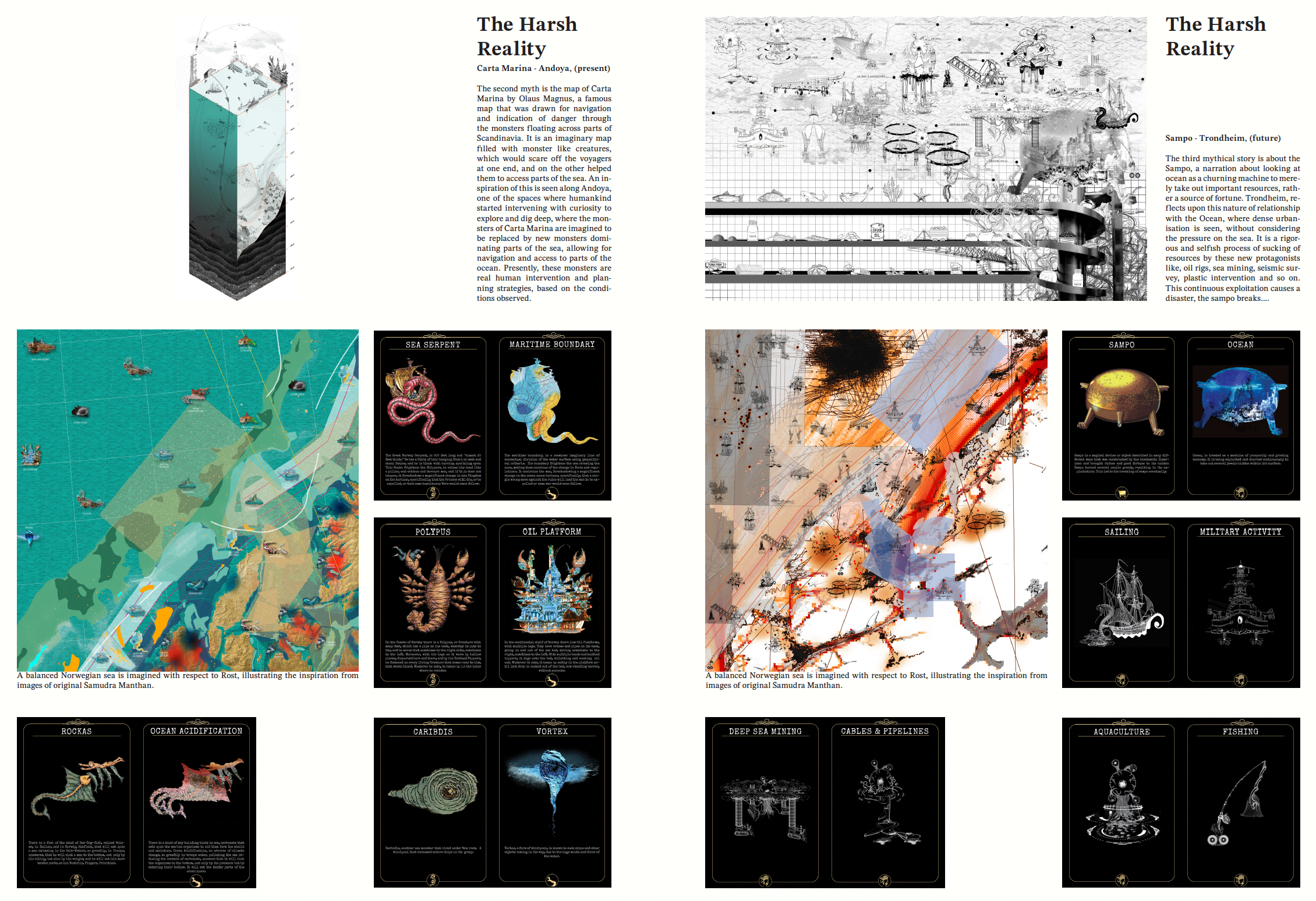 Ocean Of Myths is a series of evolution of the Norskahavet. It is an exploration to understand the Norwegian Sea, through a series of mythical stories, eventually envisioning the contemporary myth of the future. The exhibition space is divided into three stages in time; the past, the present and the future. One transcends through these spaces to experience the journey of the ocean.