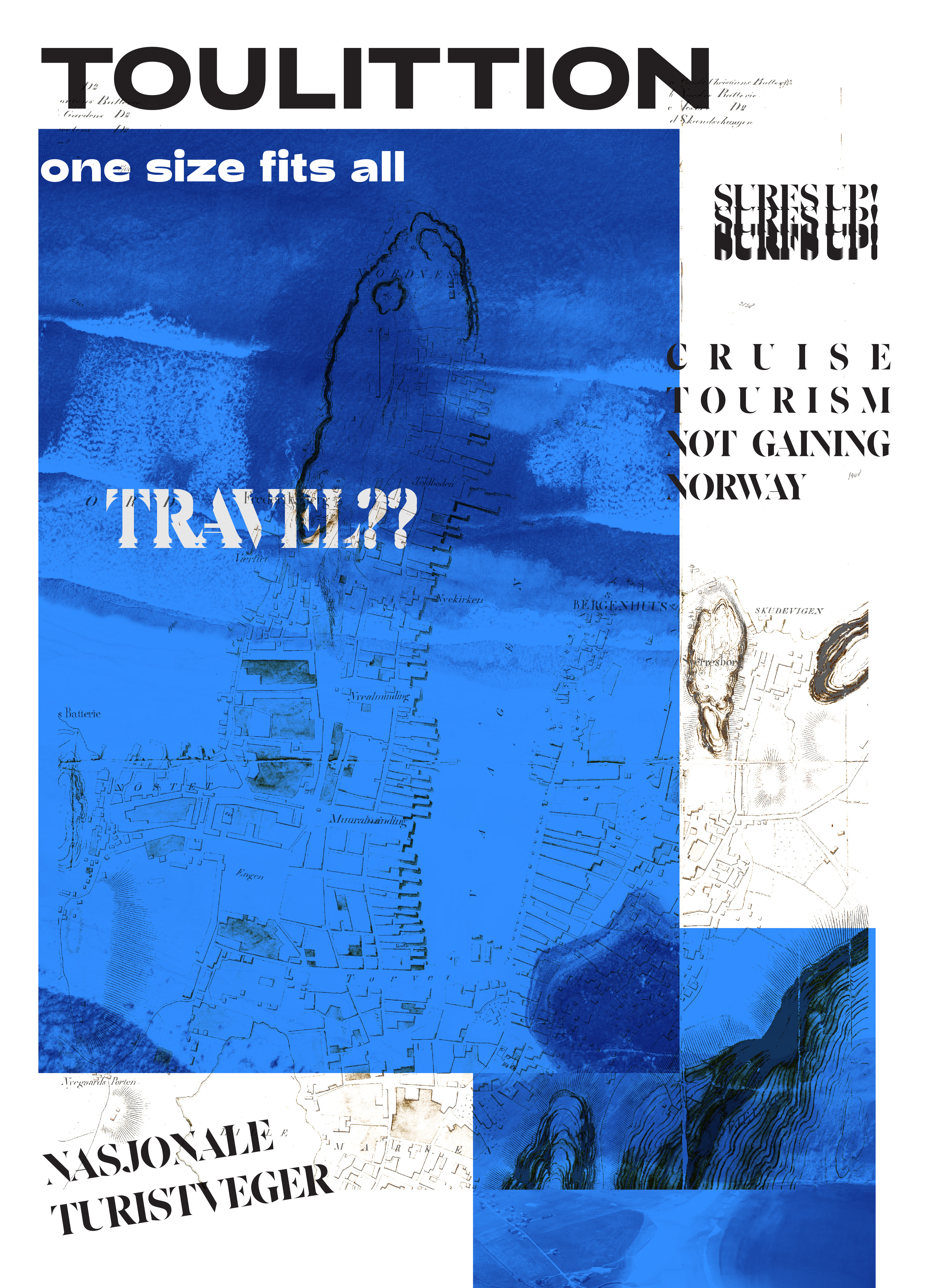 Blueprint 1 is the result of an investigation into the five maritime industries most vital to the Bergen economy but with an unaccounted impact on the ocean: shipping, oil & gas, renewables, fishing, tourism. The Blueprints have a tabloid newspaper format, conceived to potentially provide a “brief” on local maritime relations to artists invited to Bergen Kunsthall in 2021 for the Exhibition “Bergen and the Ocean”. The blueprints each developed a distinct layout and graphic language according to their chosen message. Each contains a historical timeline, an explanation of production chains, spatial and ecological footprints, interviews, case-studies and cover-ups, or accidents or invisibles that constitute the degradation of ocean life and infringement on the ocean commons.
