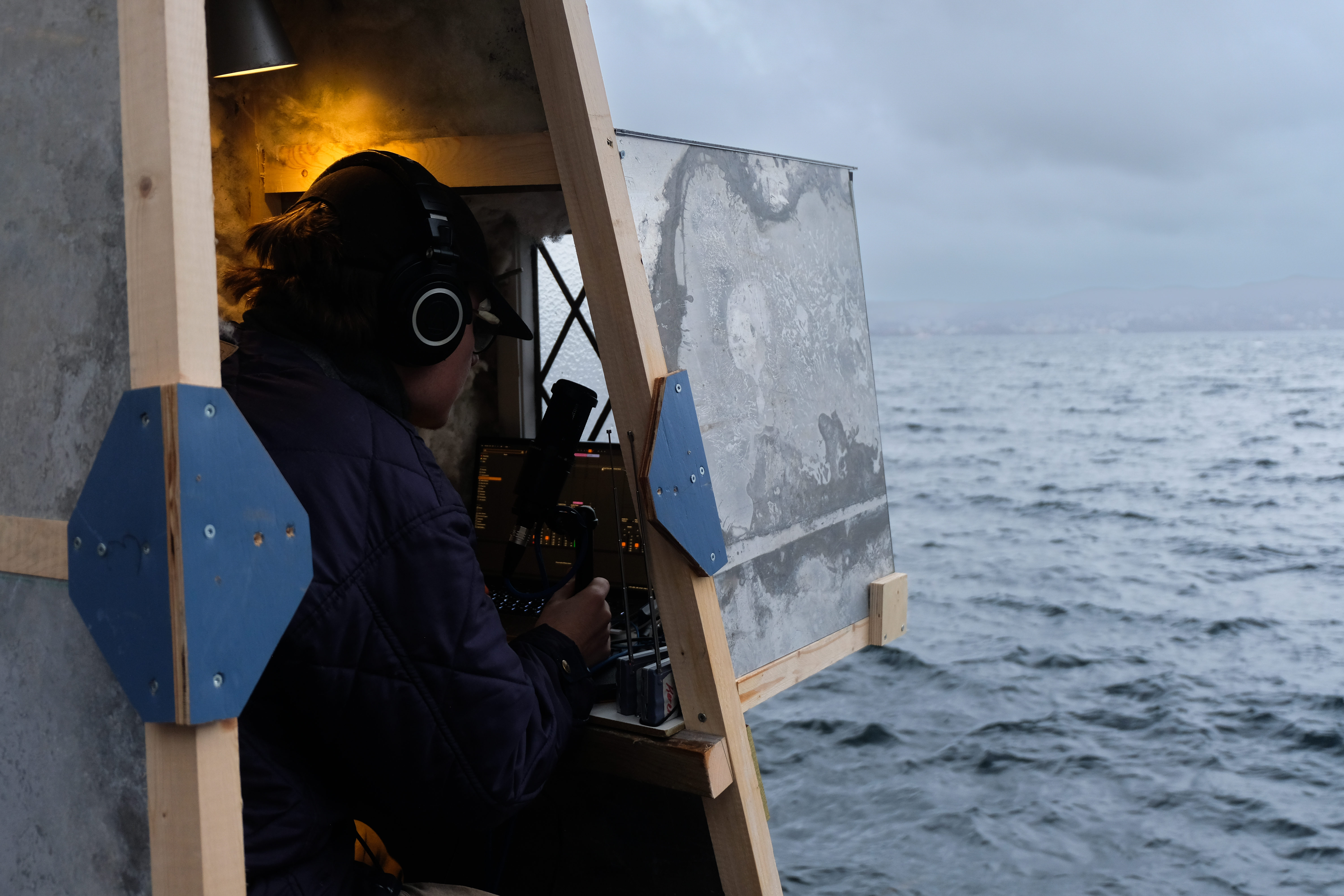 With Radio Ocean Space, we aim to create a radio station that functions as a mediator between humans and the sea. Using our self-built infrastructure, we engage in dialogue with the sea and explore a shared immaterial space. By asking questions, sharing stories, and listening, we seek the sea's responses in the form of sound waves, the rhythm of water, underwater acoustics, and its eternal elusiveness.