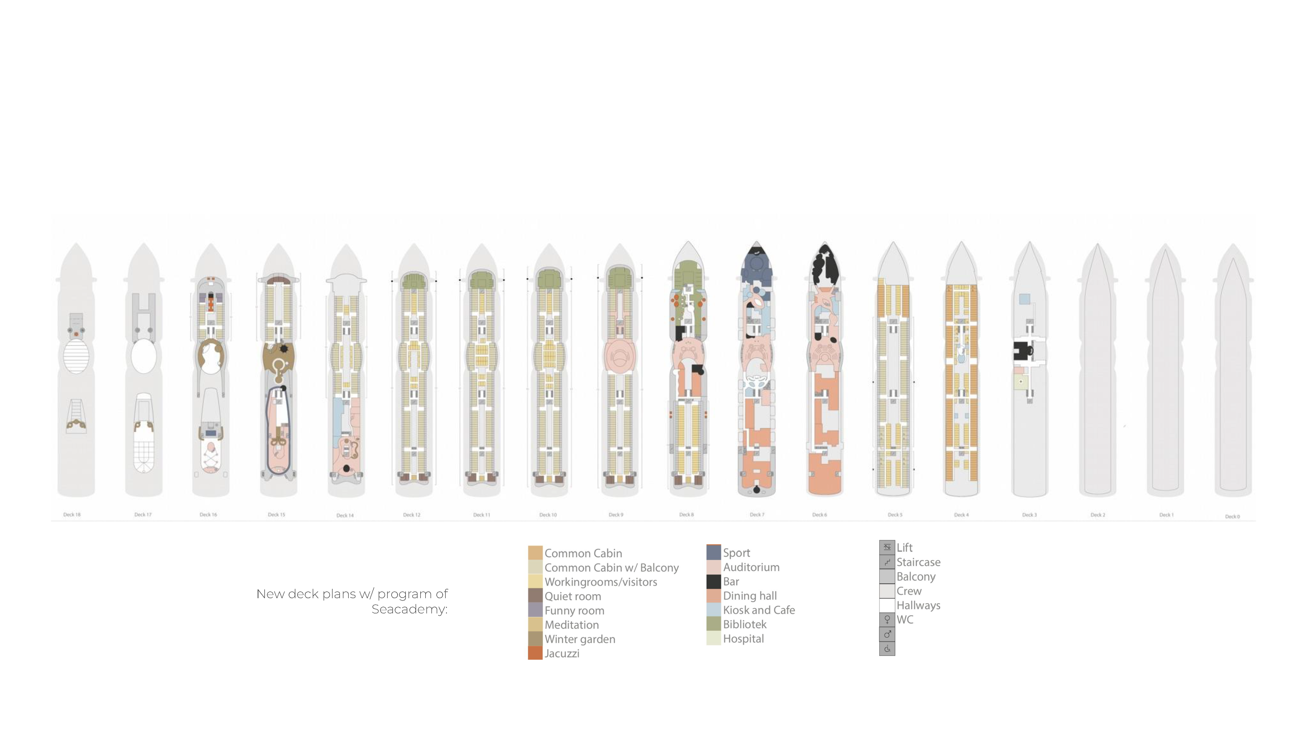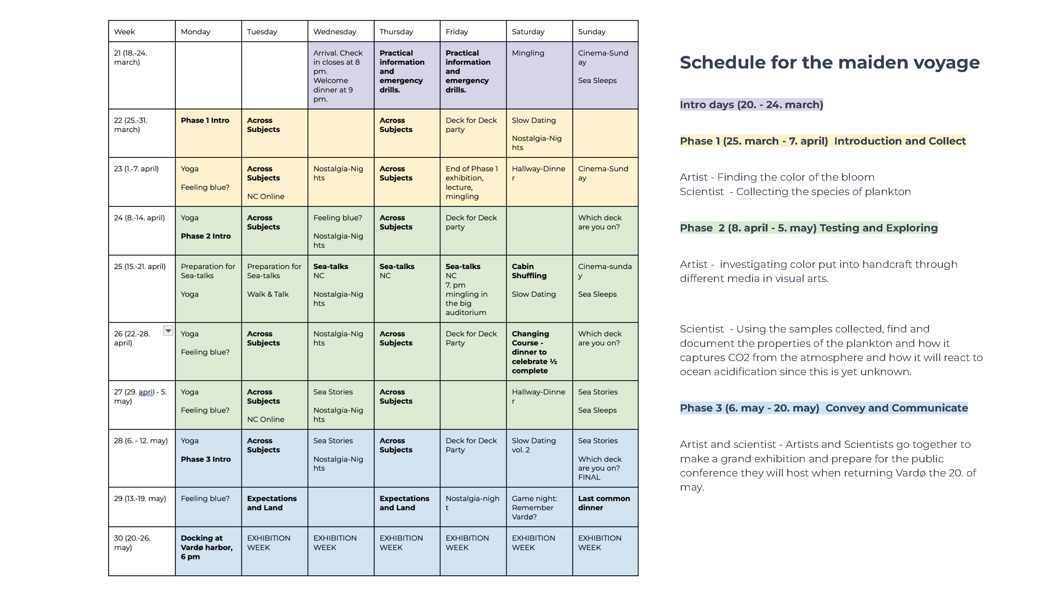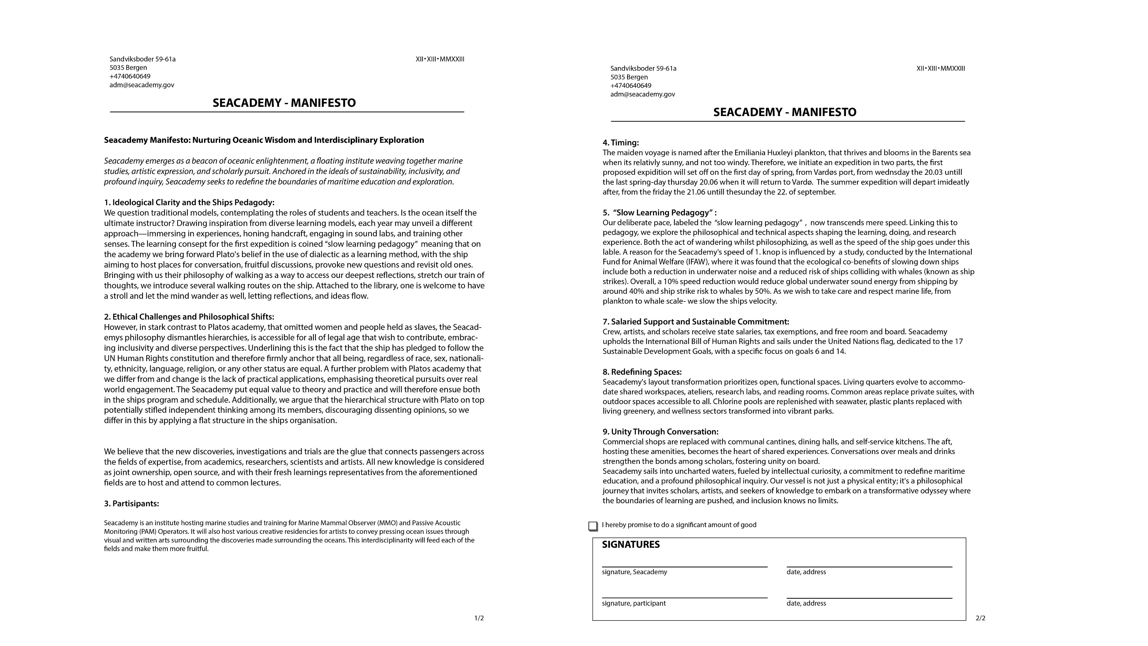 The Seacademy transforms the Aida cruise-ship into an academy with a philosophy of learning, liberation from everyday life, experiencing the sea, and the phytoplankton bloom, and providing a place of exchange between scholars, scientists and artists. The Seacademy´s philosophy dismantles hierarchies, is accessible for all of legal age that wish to contribute, embracing inclusivity and diverse perspectives. The ship has pledged to follow the UN Human Rights constitution – all beings, regardless of race, sex, nationality, ethnicity, language, religion, or any other status are equal.